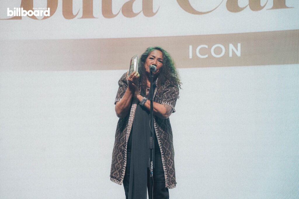 Paying tribute to her decades-long influence on Philippine music, folk-rock legend Lolita Carbon was honored with the Women in Music Icon Award. The recognition honors her decades-long influence as the pioneering voice of the band Asin and her role in creating music rooted in storytelling and social awareness.