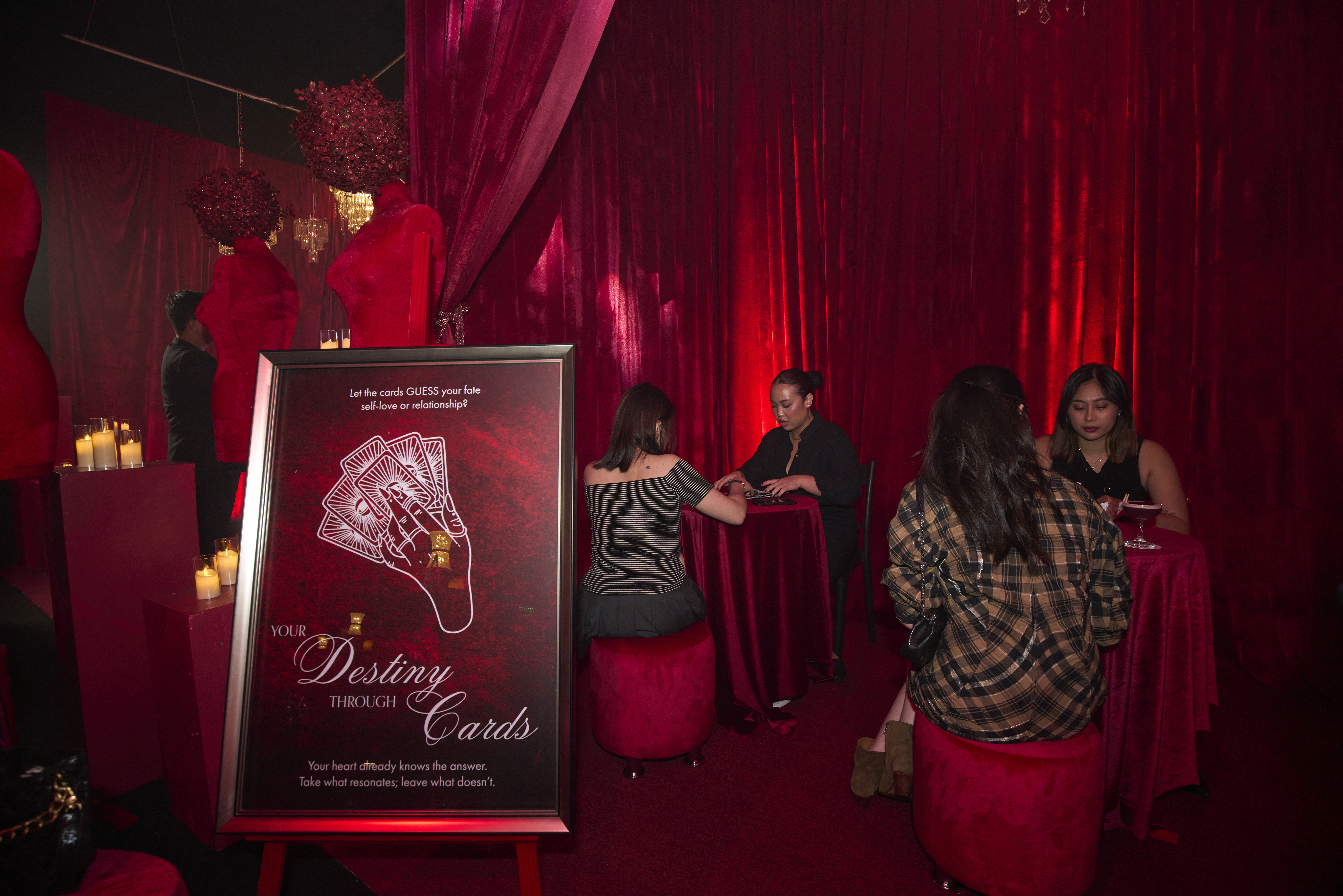 The event featured immersive activations, including tarot and palm reading booths, live performances by Burlesque PH, and curated sensory experiences—giving creators meaningful opportunities to engage, capture content, and share stories that reflected the event’s theme. One attendee shared, “This evening celebrated self-love, confidence, and empowerment, bringing together influencers, celebrities, key opinion leaders, and fashion enthusiasts—all styled in chic GUESS outfits that set the tone for the event’s stylish atmosphere.”