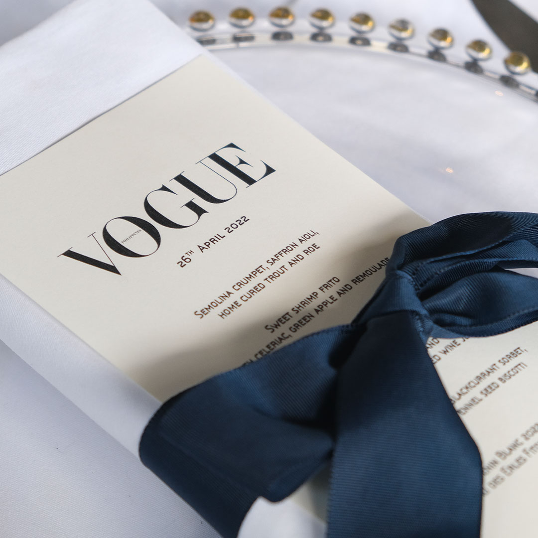 Guests of the first ever Vogue Philippines trade launch were treated to elegant and eco-friendly floral arrangements and tablescaping designed by veteran event stylist Robert Blancaflor. The setup’s sustainable concept along with its fashionable aesthetic epitomizes the overall vision for the brand. On the main stage was a big screen that donned the iconic Vogue logo finally embellished with “Philippines” – turning what was once a vision into reality.